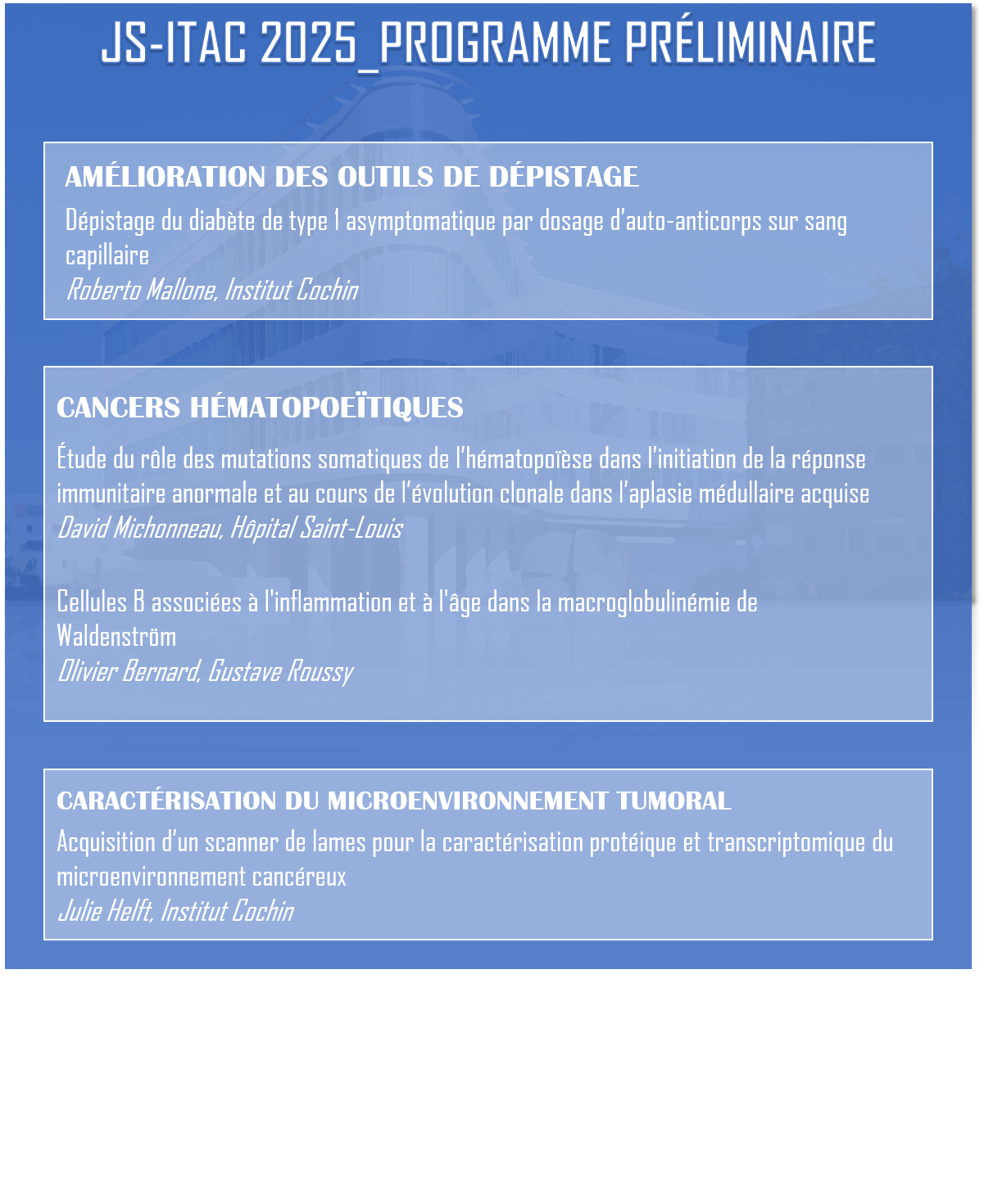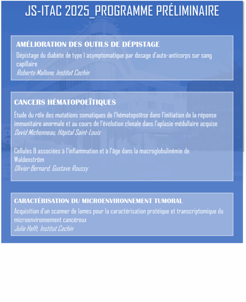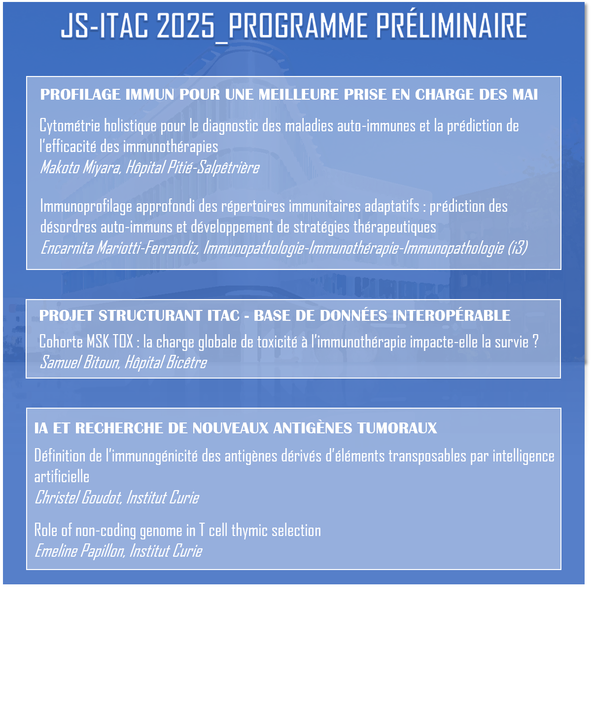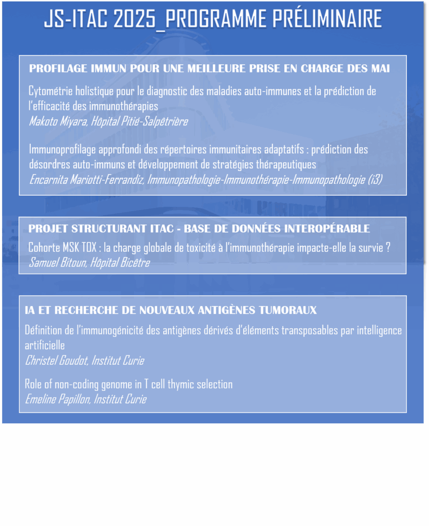 Nous vous donnons rendez-vous le 1er décembre à partir de 13h30, pour une après-midi autour des thématiques du DIM ITAC : cancer, immunothérapies, autoimmunité
